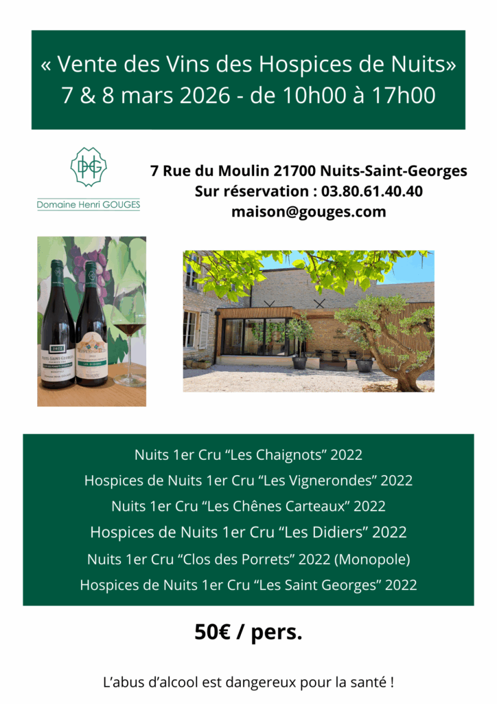 Le dimanche 14 mars 2021 aura lieu la 60ème Vente des Vins des Hospices de Nuits au Château du Clos Vougeot. Il s'agit d'un évènement majeur pour l’appellation Nuits-Saint-Georges.